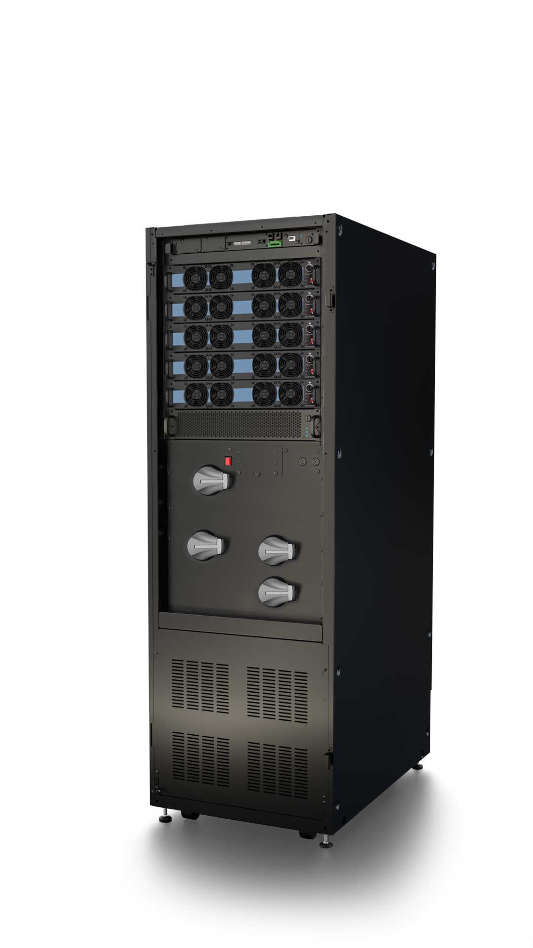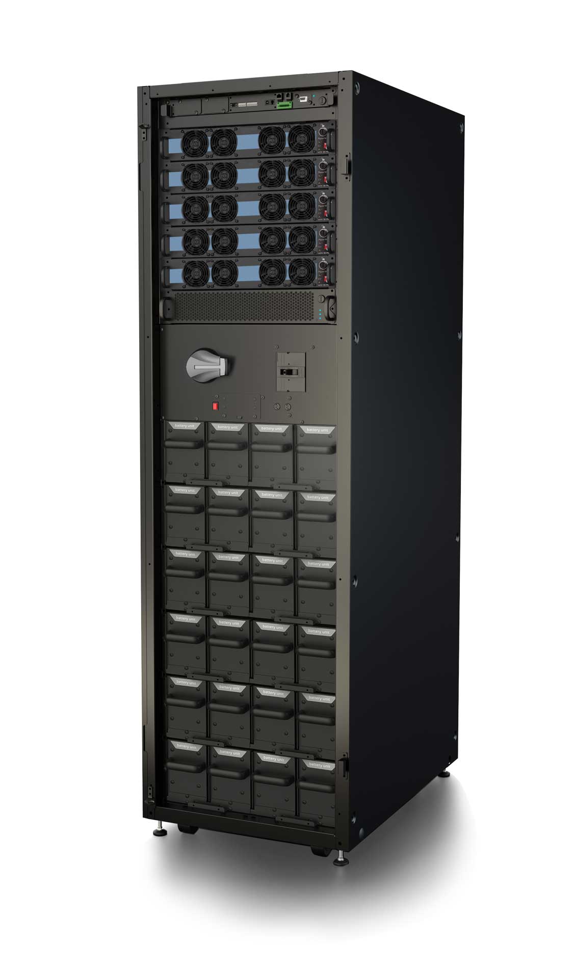 Each power module and battery unit is easily accessible from the front of the cabinet and hot-swappable. This ensures any module can be serviced, maintained, or even replaced while the rest of the system continues to protect the load, minimising the Mean Time to Repair (MTTR).