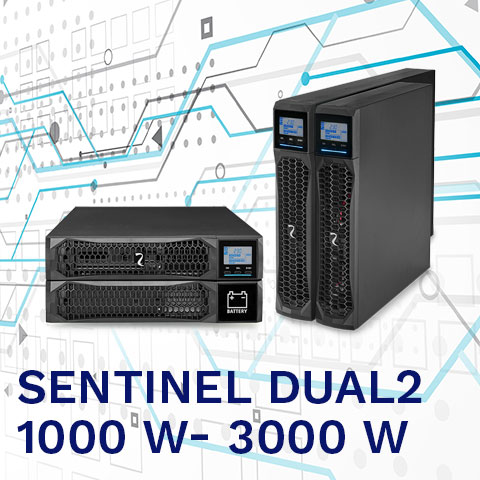 Sentinel Dual2 (SD2) is a compact, high-performance ONLINE UPS versatile UPS designed for critical systems like blade servers, VoIP equipment, IT networks, electro-medical devices, emergency lighting, and safety systems.